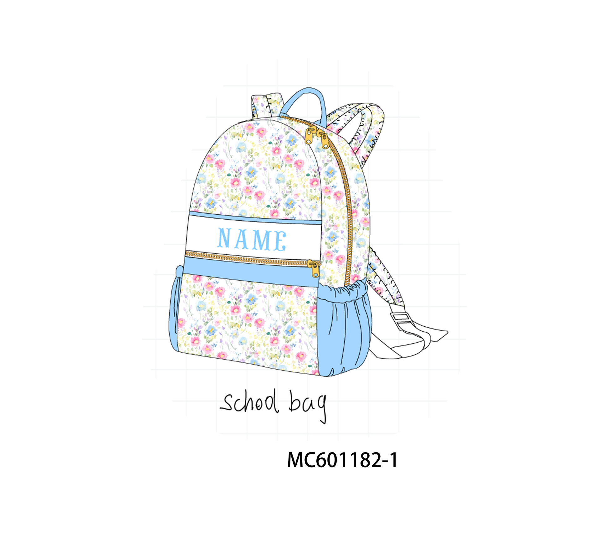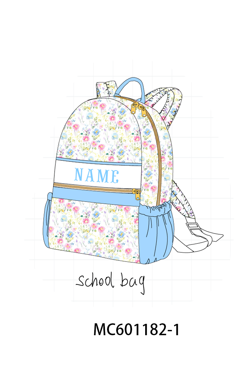 PO79 Blue monogram embroidery floral print backpack