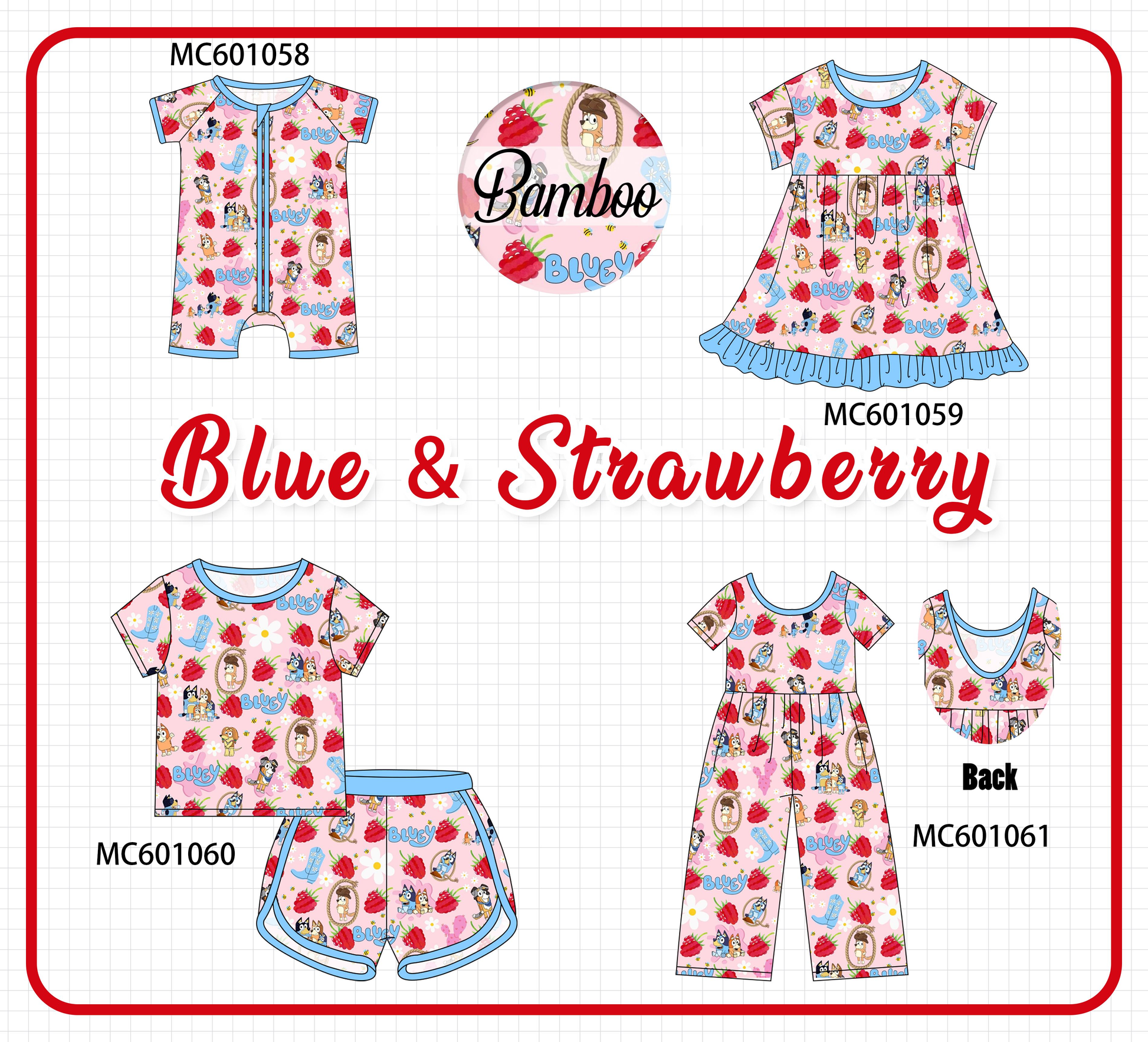 PO79 Blue&pink character print bamboo collection